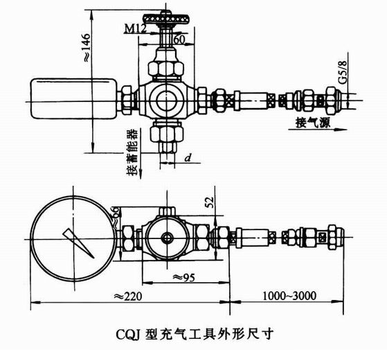 型 號 | 公稱壓力 /MPa | 配用壓力表 | 與蓄能器連接尺寸 /mm | 膠管內徑規格 /mm |
