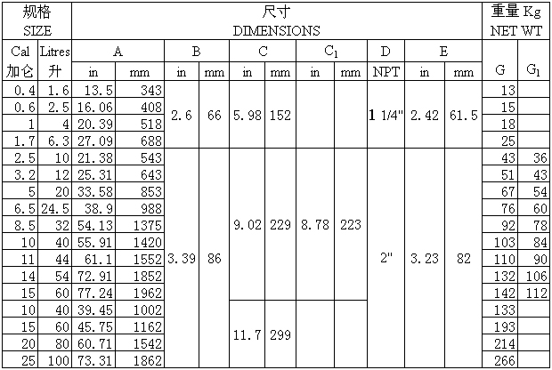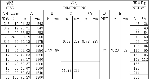 B型蓄能器基本參數(shù)及主要尺寸